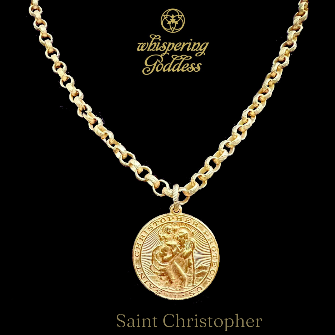 It is said wearing a Saint Christopher Medal enhances the protection of these two heavenly helpers on our life path.   The medal is a reminder to Be Still and Listen especially when the next steps of life's journey are unsure.  On the reverse side is Saint Anthony,  Patron Saint of All Lost Things so the traveler can safely find their way back home.