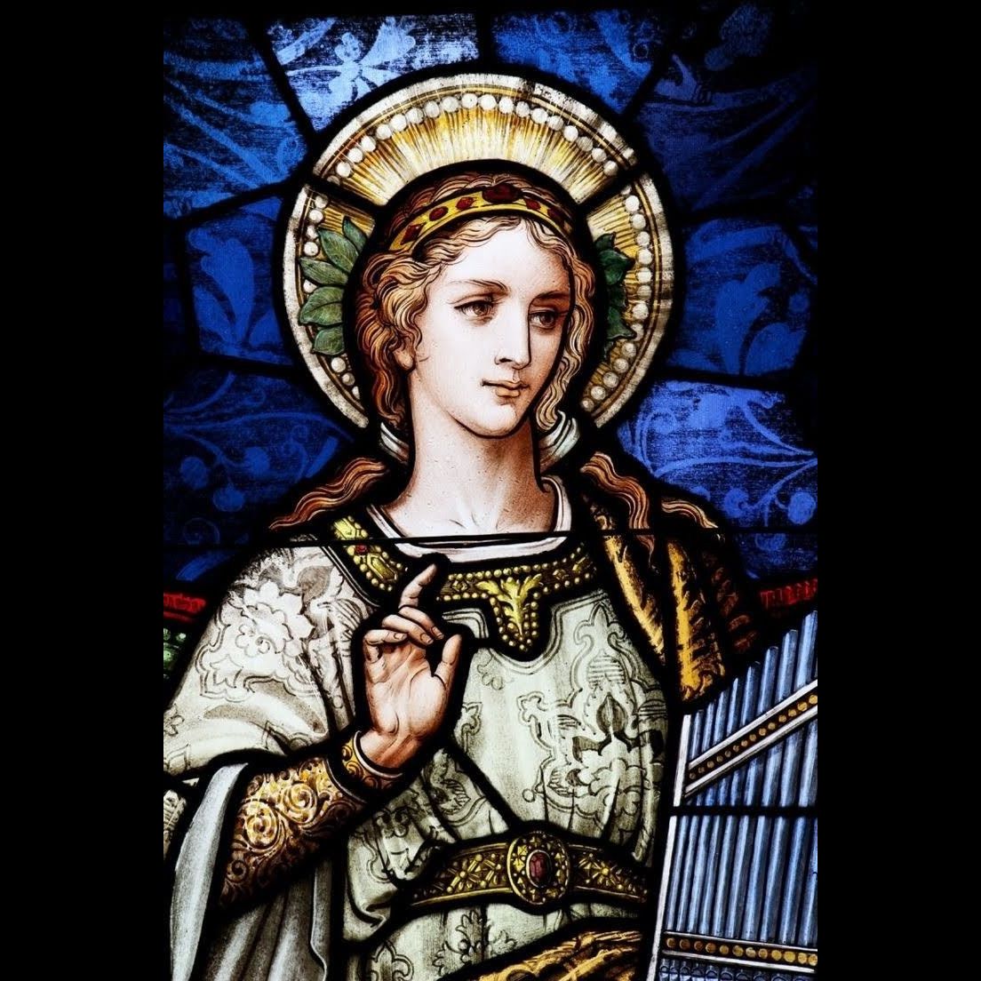 Saint Cecilia, a noble Roman maiden of the second or third century, secretly vowed her virginity amid a society that expected marriage and heirs. On her wedding day, while pipes and lyres filled the banquet hall, she sang silently in her heart, asking to remain untouched and faithful to a deeper calling. When her Christian faith was discovered, she was condemned: first suffocated in a scalding bath that left her unharmed, then struck three times on the neck by the executioner’s sword. She lingered for three days, blood flowing yet still praising in quiet joy, before peacefully dying.